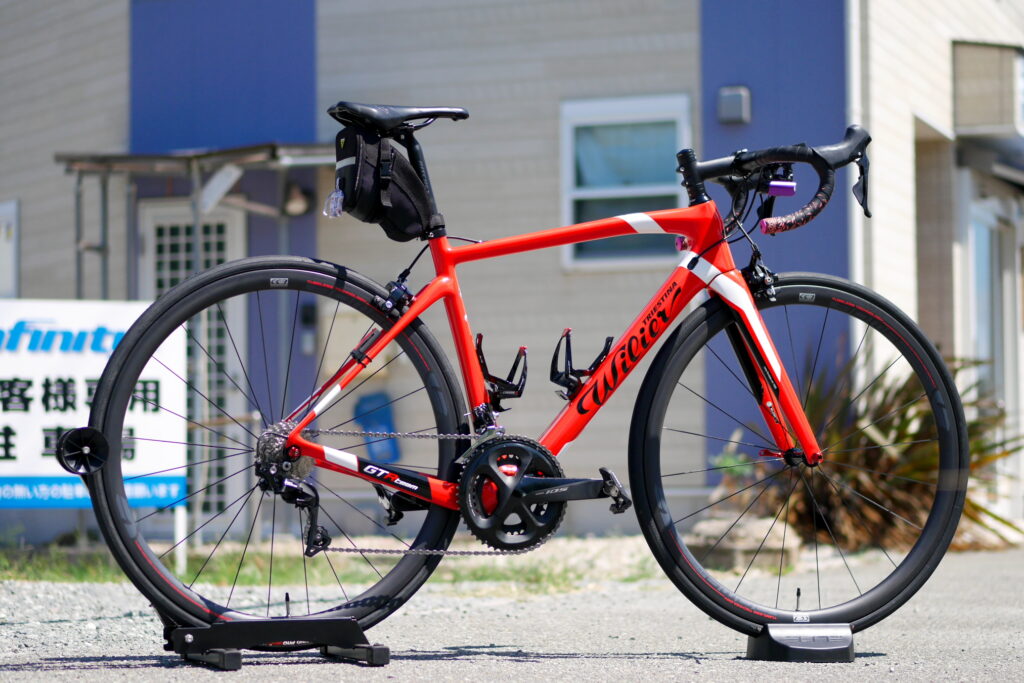 「いつかはカーボンホイール!」とお話ししていたI様。ご来店時に「BOMAのTH-W35TL」をご紹介したところハブやリムの赤いデザインに惹かれフレームにぴったり!と、気に入ってくださいました。装着してみると想像通りフレームとマッチして満足な仕上がりになりました。ぜひ走った感想をお待ちしております。ご購入ありがとうございました。